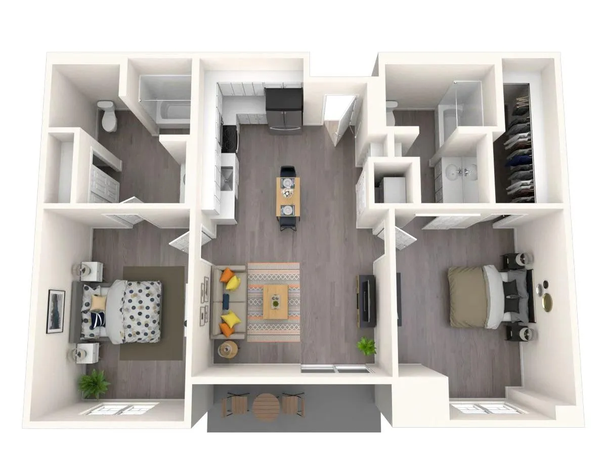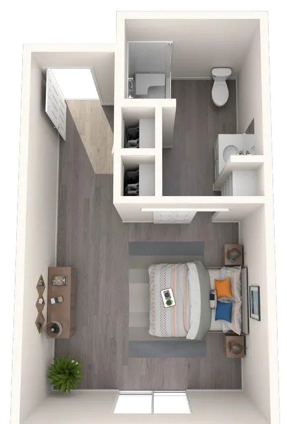 Spacious apartment-style studio, one-, and two-bedroom units with private bathrooms and kitchenettes